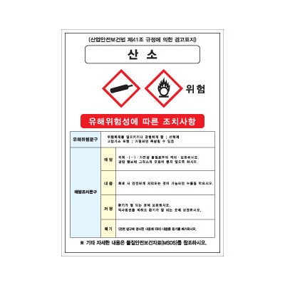 산소 유해위험성에 따른 조치사항